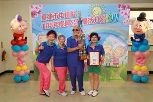臺北市中山區健康服務中心「105年阿公阿嬤活力SHOW」活動已於105年6月17日圓滿成功,感謝陳炳甫議員、葉林傳議員、林國成議員、黃向羣議員、臺北市中山區公所李美麗區長、臺北市中山健康促進協會郭秀珍理事長、吳錦蓮常務理事、譚秋英理事、宋羅蘭理事、林松年候補理事、榮星社區發展協會王進宗理事長、恩主公社區發展協會陳慧君理事長、力行里沈銀德里長、康樂里王金富里長、圓山里葉建輝里長、中原里蘇國昌里長、新庄里林世檳里長、中吉里林德勝里長、龍洲里陳世明里長、正得里吳蘇秀霞里長、中山老人住宅暨服務中心吳欣燕督導、臺北市立聯合醫院中興院區蔡景耀與陳冠仰醫務長及陳靜琳行政中心主任、臺灣基督長老教會馬偕醫療財團法人馬偕紀念醫院社區醫學中心團隊、泰安醫院游春慧護理長及臺北市政府衛生局健康管理處林柳吟專員共同為參加的長者大聲加油,打造高齡友善中山城。