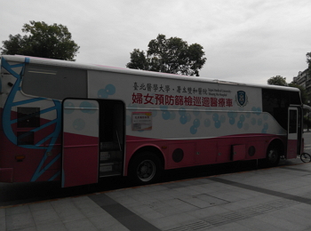 | 圖1:乳攝車巡迴服務車現場服務 | 圖2:口腔黏膜篩檢服務 |