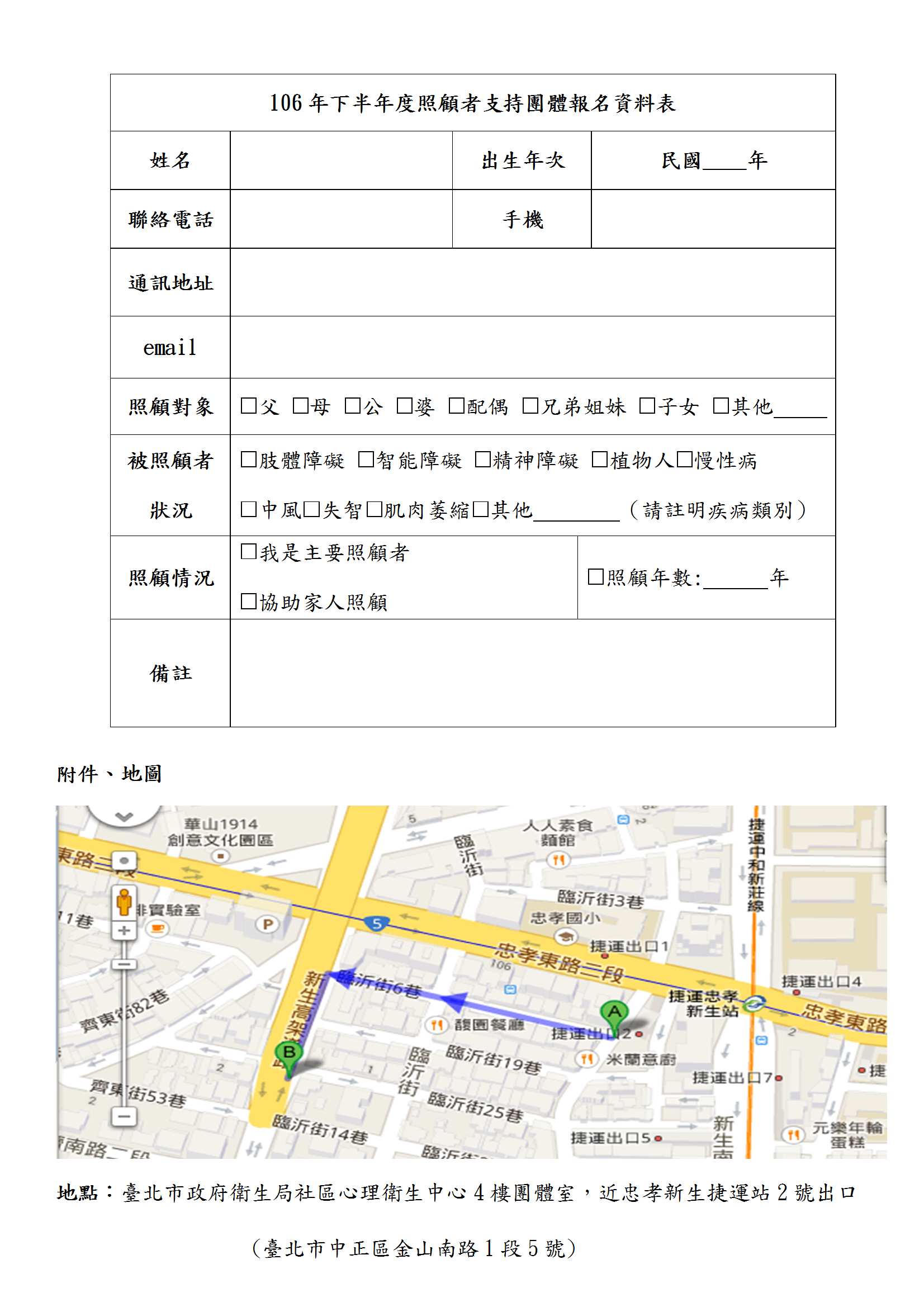 三、活動地點:社區心理衛生中心四樓(台北市金山南路1段5號4樓團體室~近捷運忠孝新生站2號出口)