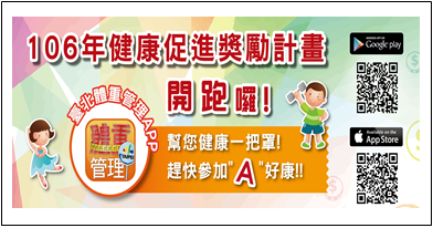 為增進市民健康識能,提升市民對於健康議題之認知率,臺北市政府衛生局辦理「健康生活金頭腦」有獎徵答活動,藉此達到增進市民之健康識能,提升市民自我健康管理行為、促進健康服務的有效利用、減少醫療成本等目的。即日起至106年11月30日止,將舉辦5次健康識能有獎徵答活動,每次以電腦隨機抽出30名參加者贈送精美獎勵品,只要年滿6歲以上市民,可於Google搜尋「106年臺北市健康生活金頭腦識能問卷」(https://goo.gl/forms/GsN0F3URb3LCF41H2),歡迎踴躍參加!詳細活動辦法請上「臺北市政府衛生局官網/活動訊息」、「臺北市健康體重管理專區」(https://101.health.gov.tw/)查詢。